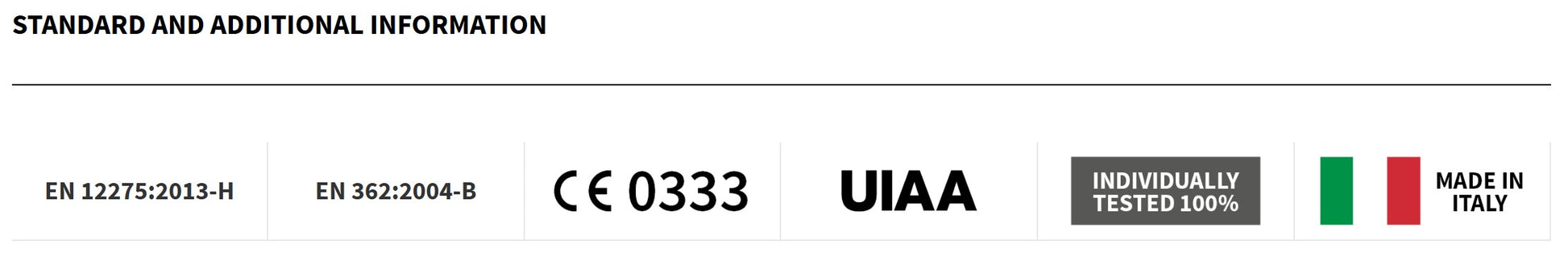 - large size and ample width to allow use of Munter hitch knot, the securing of more than one rope, slings or devices and rope manoeuvres in general;